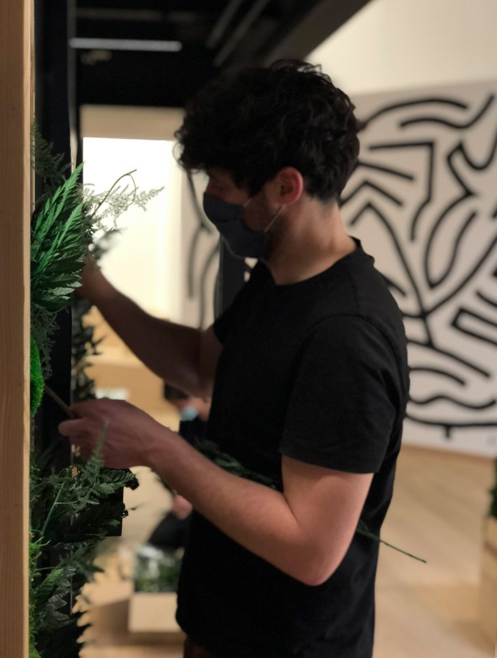 La team Yanomami a conçu des blocs recouverts de mousse puis piqué de diverses essences de végétaux stabilisés pour un résultat durable et sans entretien ! Cette haie verte foisonne de chaque côté des claustras, les visiteurs en profitent depuis l’accueil et les collaborateurs depuis leurs bureaux.